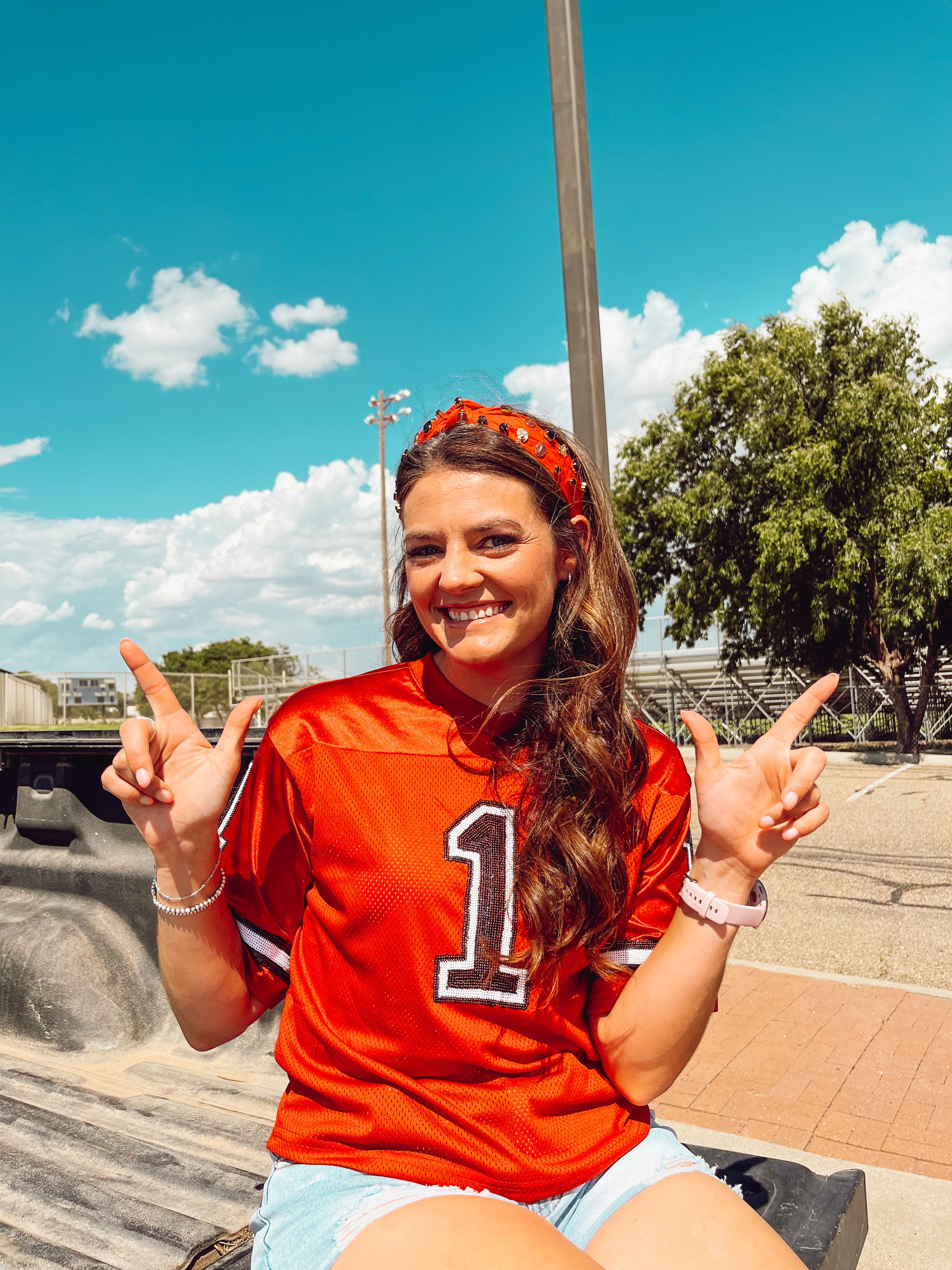 Get ready to shine on and off the field with the Meet Me in the Bleachers Jersey! This playful red and black sequin football jersey adds a sparkling twist to classic sporty style, perfect for standing out at the game or your next party. Comfortable and eye-catching, it’s your new go-to for fun and flair.