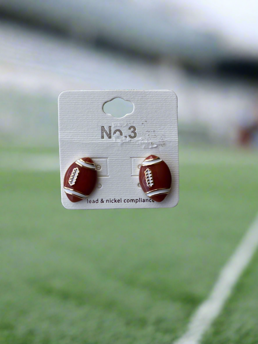 Show off your love for the game with these playful Touchdown Stud earrings. Designed like miniature footballs, they add a sporty spark to any outfit. Perfect for game day or everyday fun, these studs make scoring style points effortless and easy!